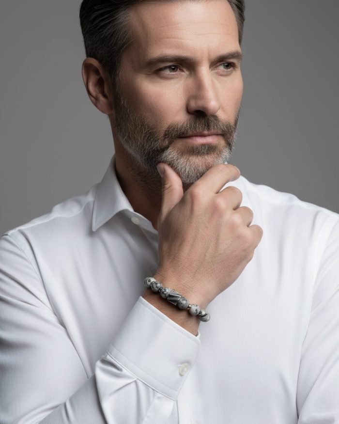 Браслет СТАЛЬНОЙ ХАРАКТЕР. Серая яшма
