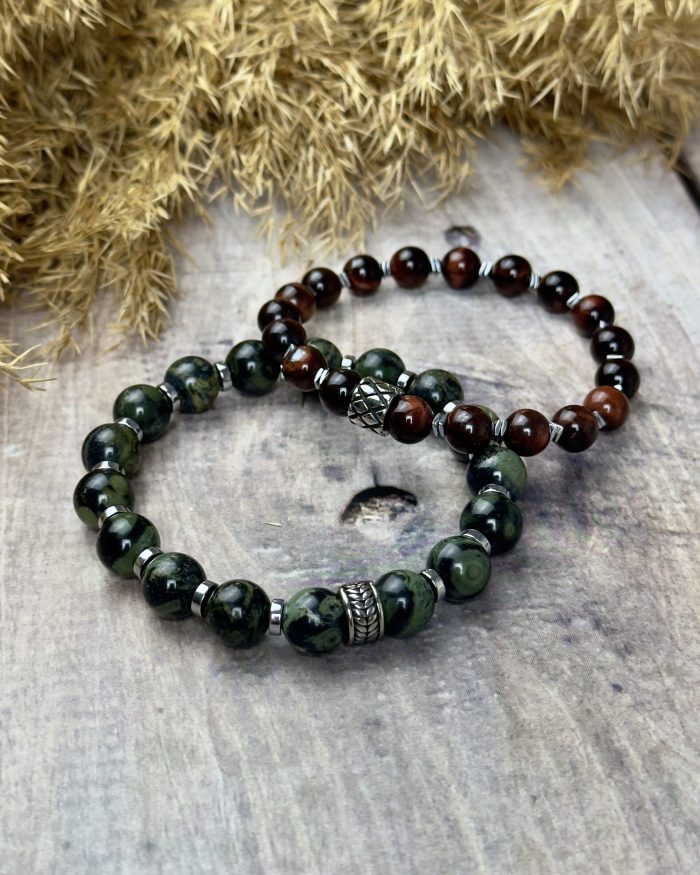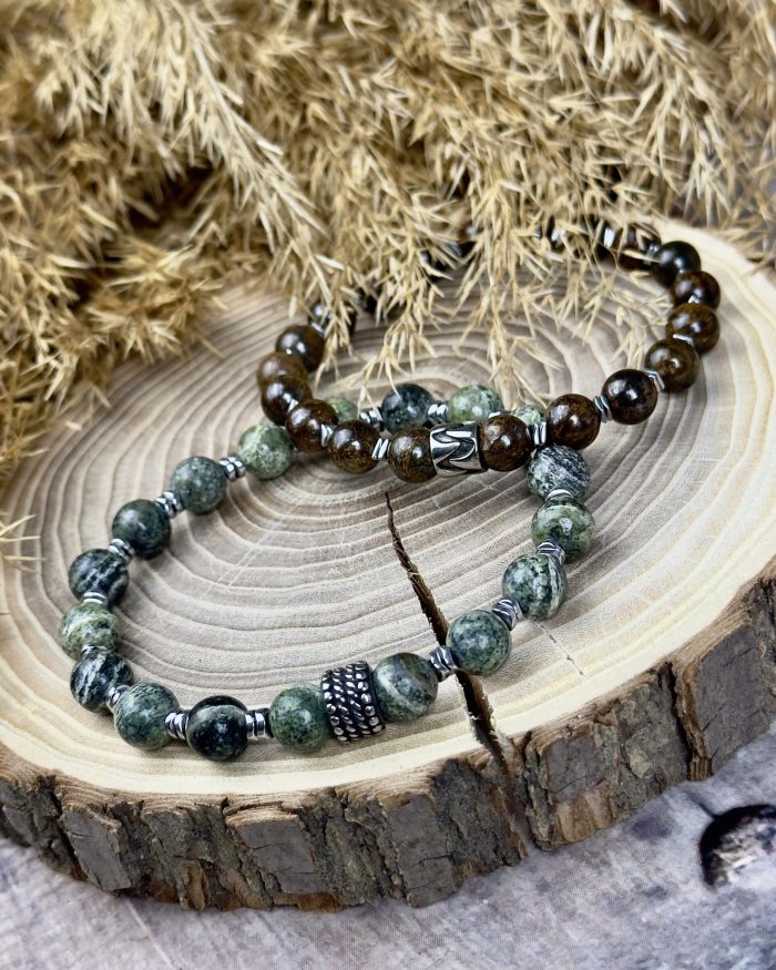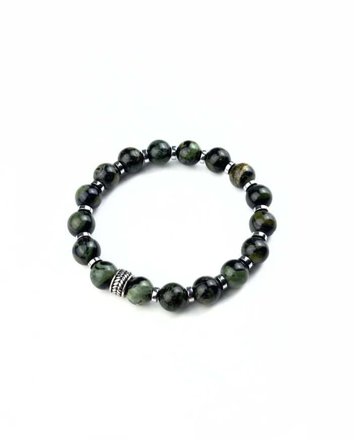 Браслет СТАЛЬНОЙ ХАРАКТЕР. Зеленая яшма
