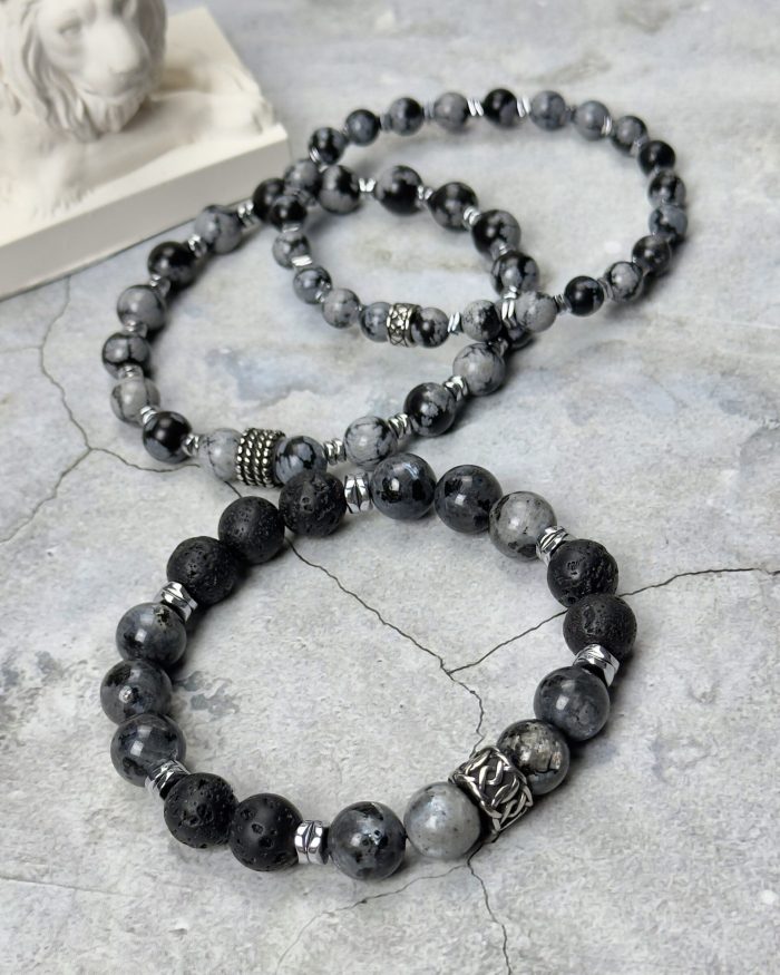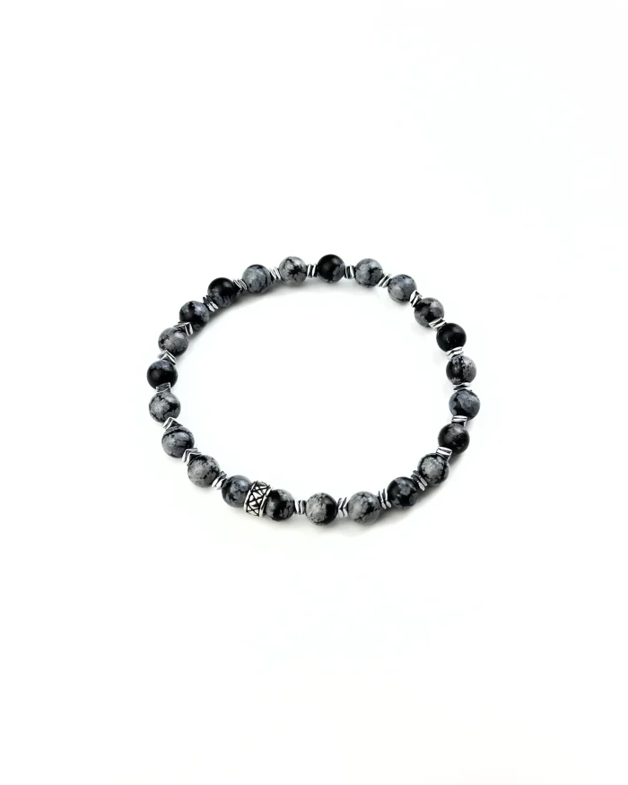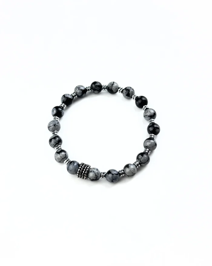 Браслет СТАЛЬНОЙ ХАРАКТЕР. Снежный обсидиан