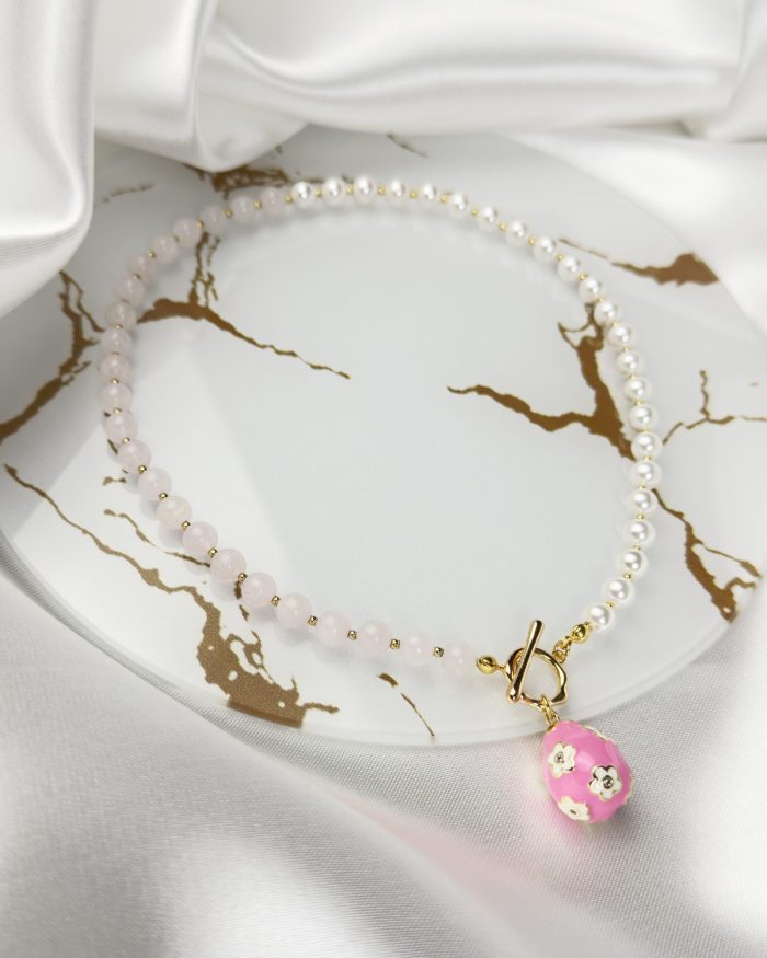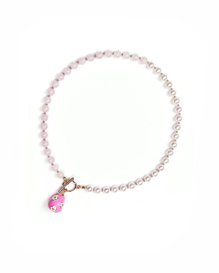 Колье ПАСХАЛЬНОЕ ЯЙЦО. Розовый кварц
