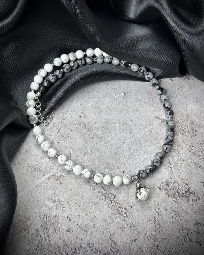 Колье КОГОТЬ ДРАКОНА. Обсидиан и Магнезит