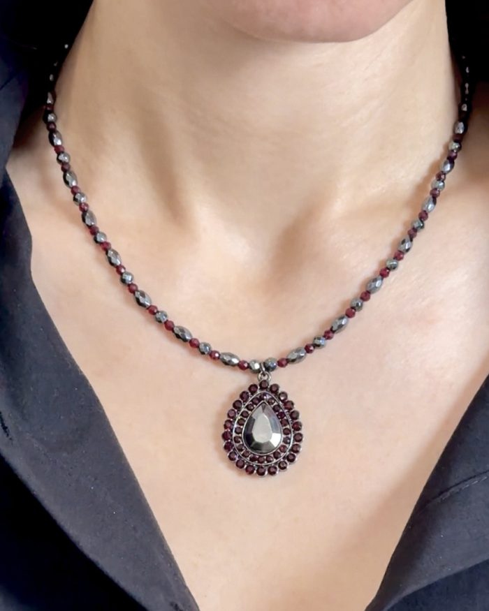 Браслет КУБИКИ. Гранат и гематит