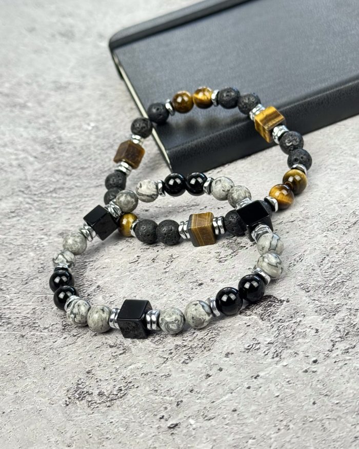 Браслет КУБЫ. Тигровый глаз и гематит 2.0