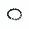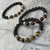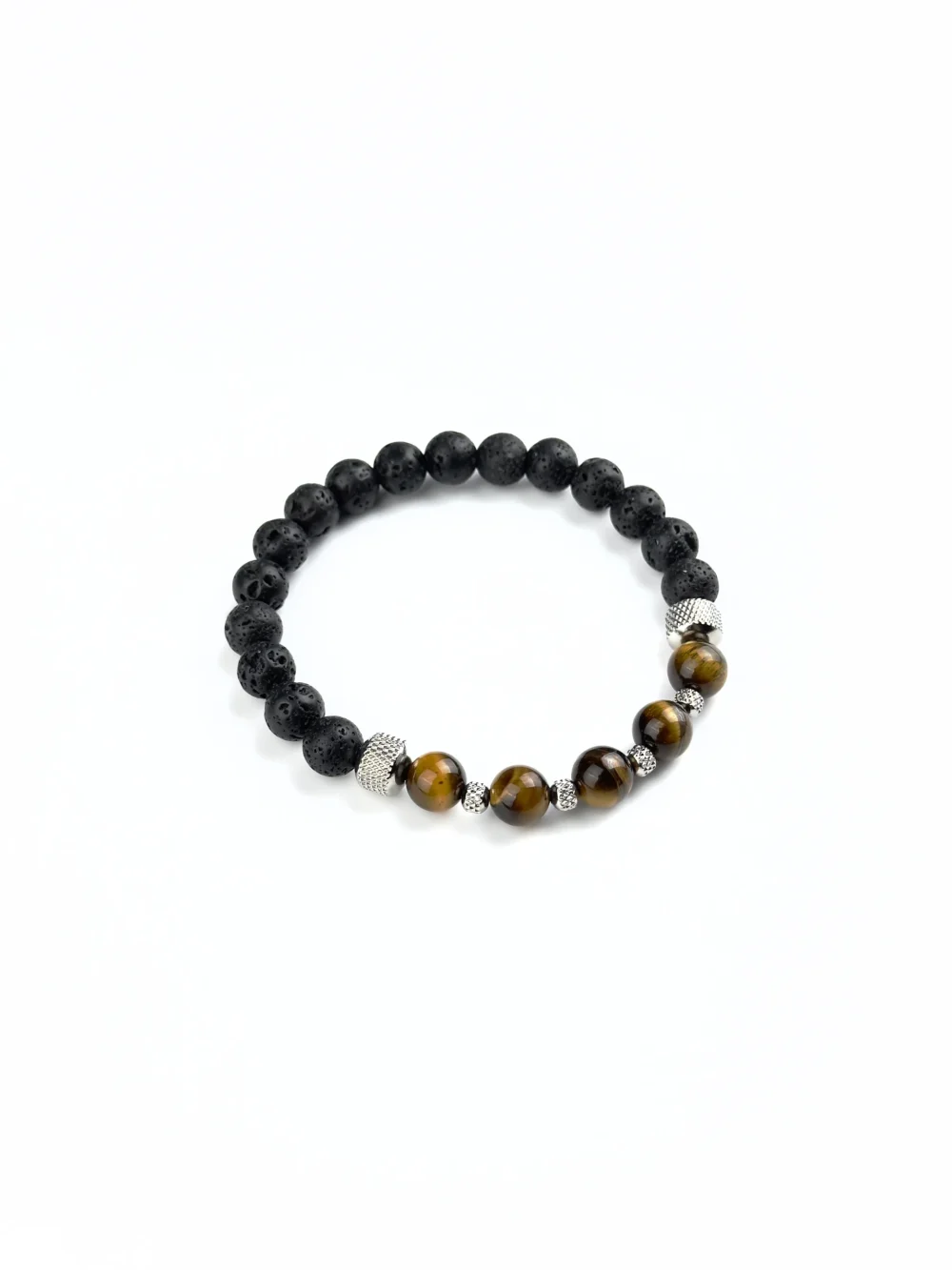 Браслет выполнен из натуральных камней – тигрового глаза и вулканической лавы и украшен харизматичными вставками из нержавеющей стали. Это сочетание не только привлекает взгляды, но и подчеркивает силу и уверенность владельца, делая его идеальным аксессуаром для настоящих лидеров.