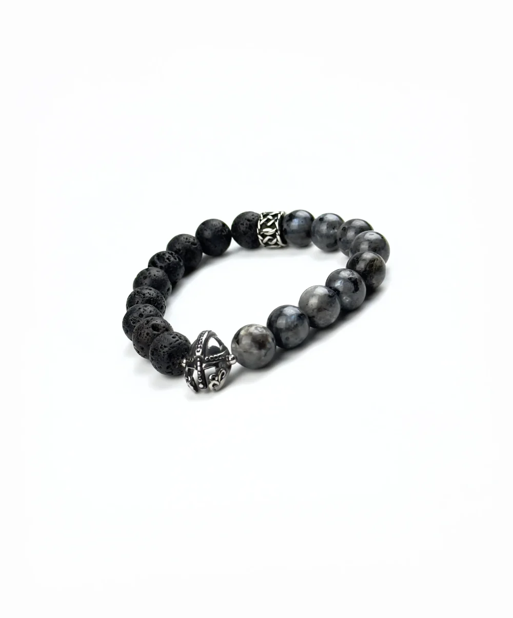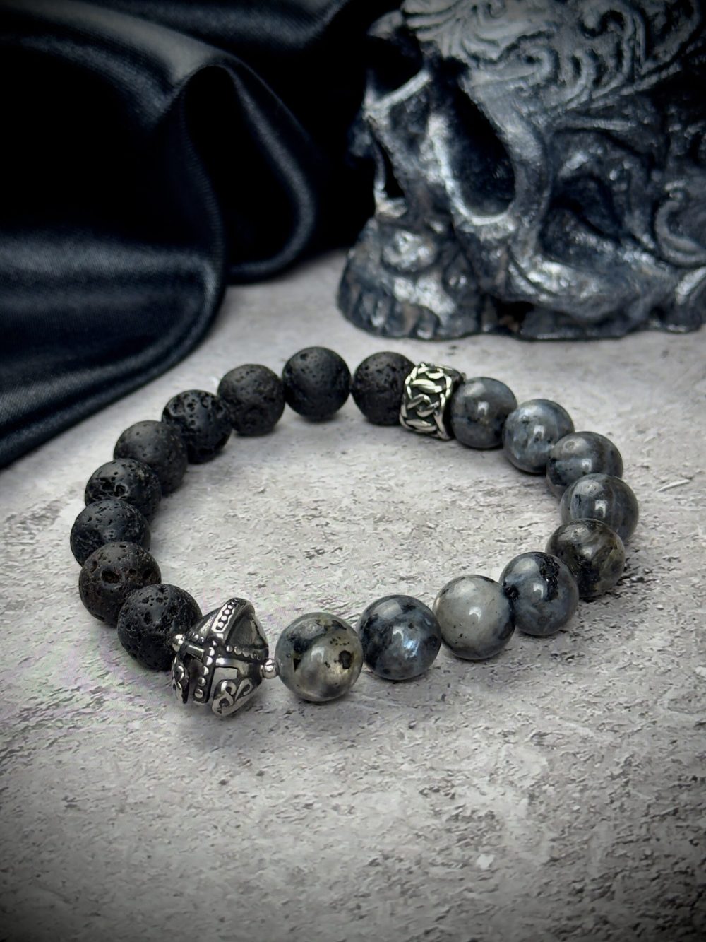 Ларвикит словно отблеск лунного света на стальных доспехах, и вулканическая лава — застывшая мощь земли. Два начала, объединённые стальным стержнем воли.