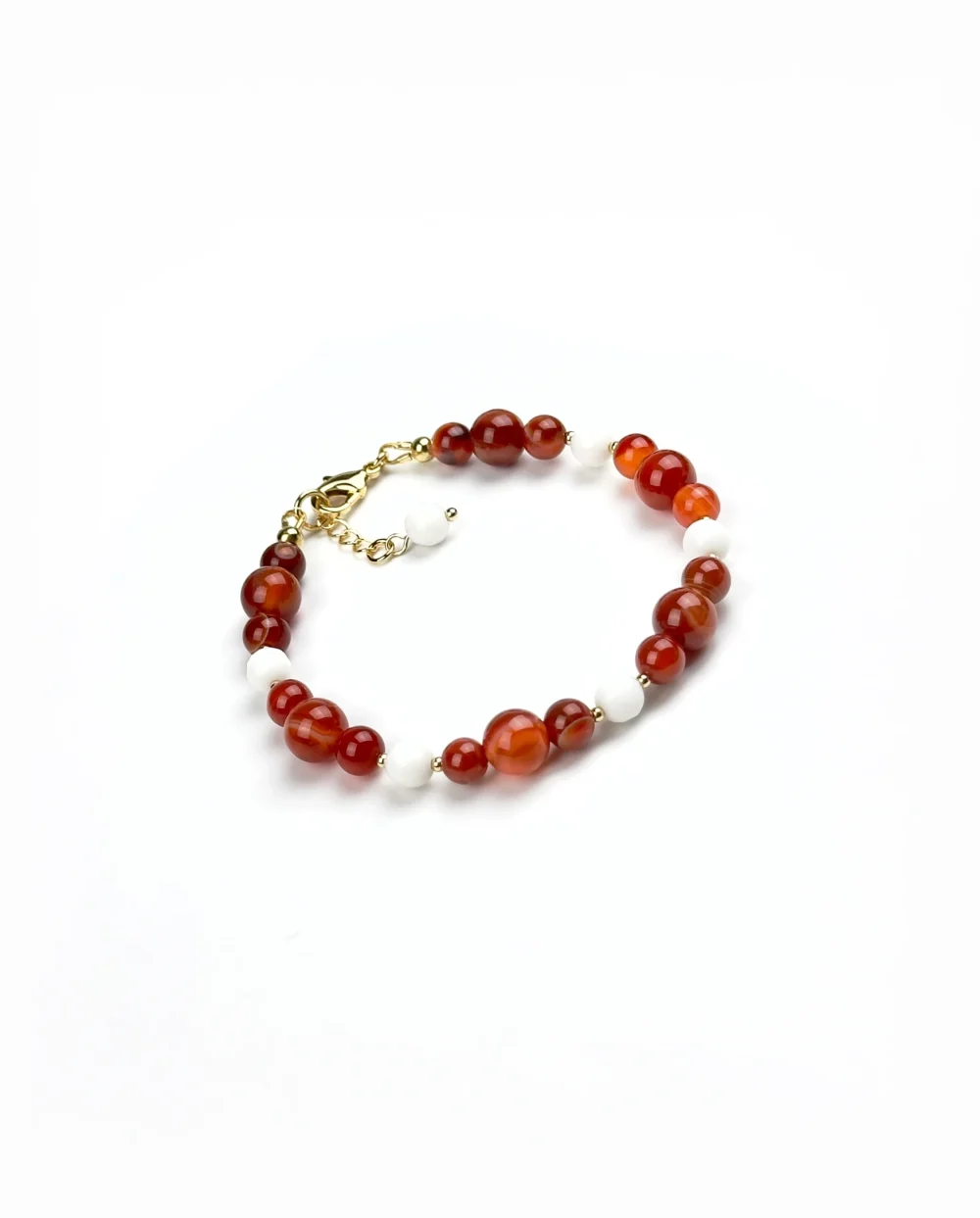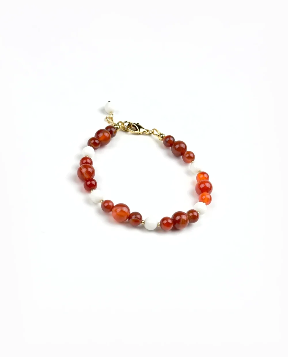 Браслет АПЕЛЬСИНОВЫЙ МУСС — это яркий аксессуар, созданный из натурального солнечно-рыжего сардоникса и белого граненого агата.