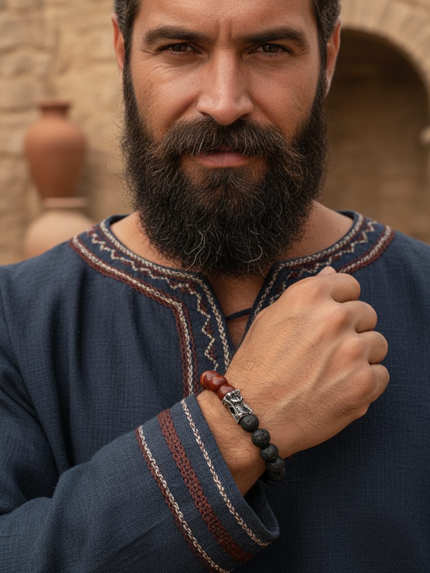 Красная яшма символизирует силу, страсть и жизненную энергию, наполняя своего владельца уверенностью и настойчивостью. А вулканическая лава, обладая мощной энергетикой, символизирует мощь и стойкость, создавая идеальный контраст с яркостью красной яшмы.