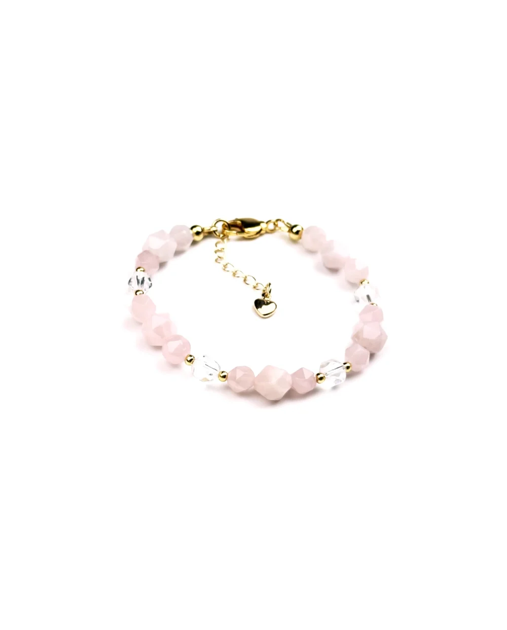 Браслет ГРАНИ. Зимняя роза – это утончённое украшение, выполненное из натуральных камней: розового кварца и горного хрусталя.
