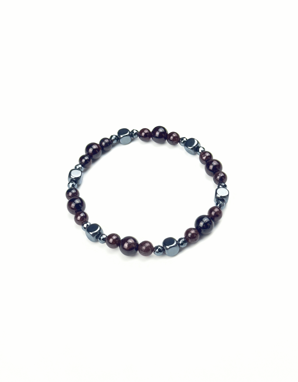 Браслет выполнен из натуральных камней – граната и гематита, каждый из которых обладает своей особой энергетикой и красотой.