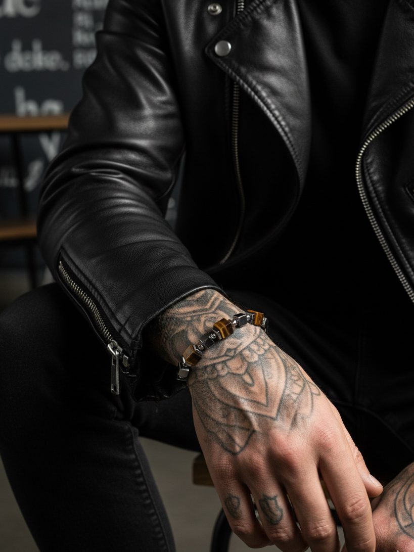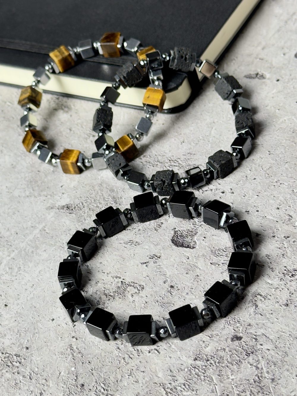 Браслет выполнен из натуральных камней – тигрового глаза и гематита, исполненных в виде харизматичных кубов. Этот аксессуар станет настоящим акцентом вашего образа, подчеркивая индивидуальность и характер своего владельца.