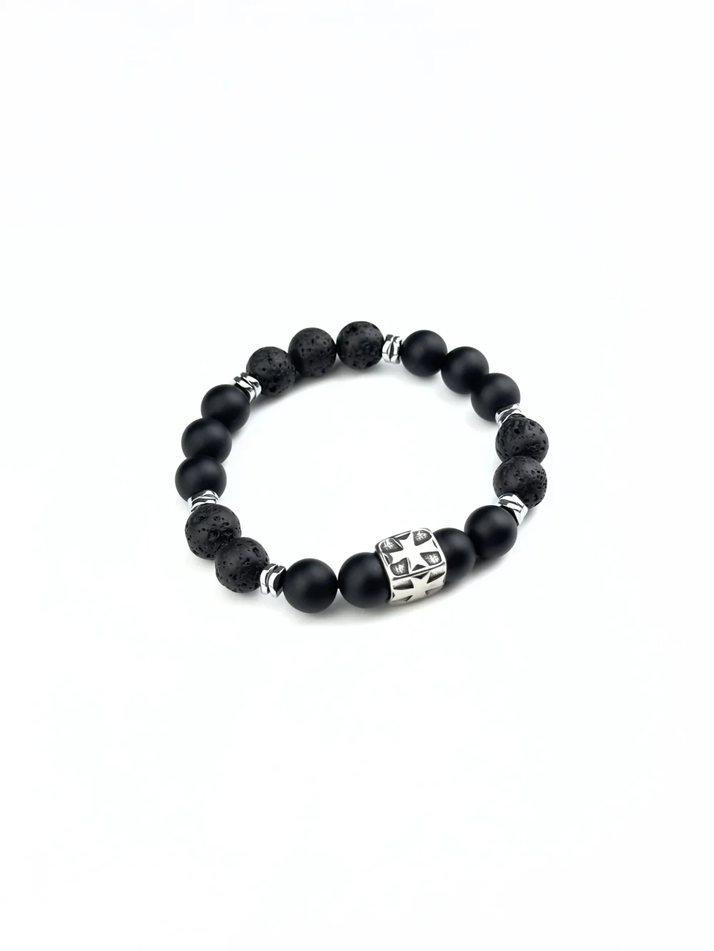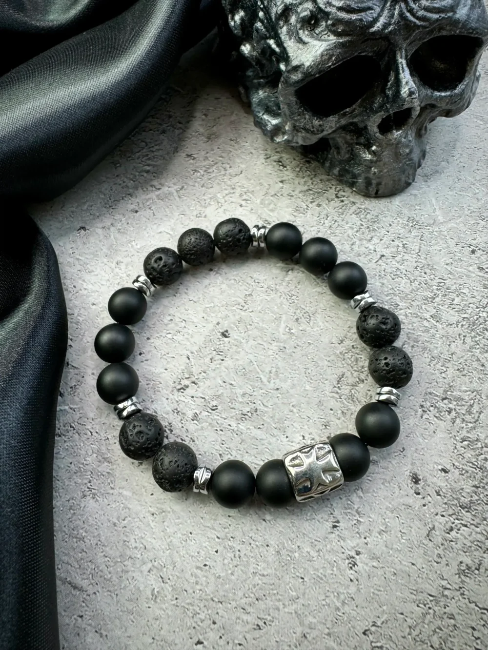 Глубина черного агата, мощь вулканической лавы и стальная сила гематита — в этом браслете заключена формула несокрушимой защиты и целеустремленности.