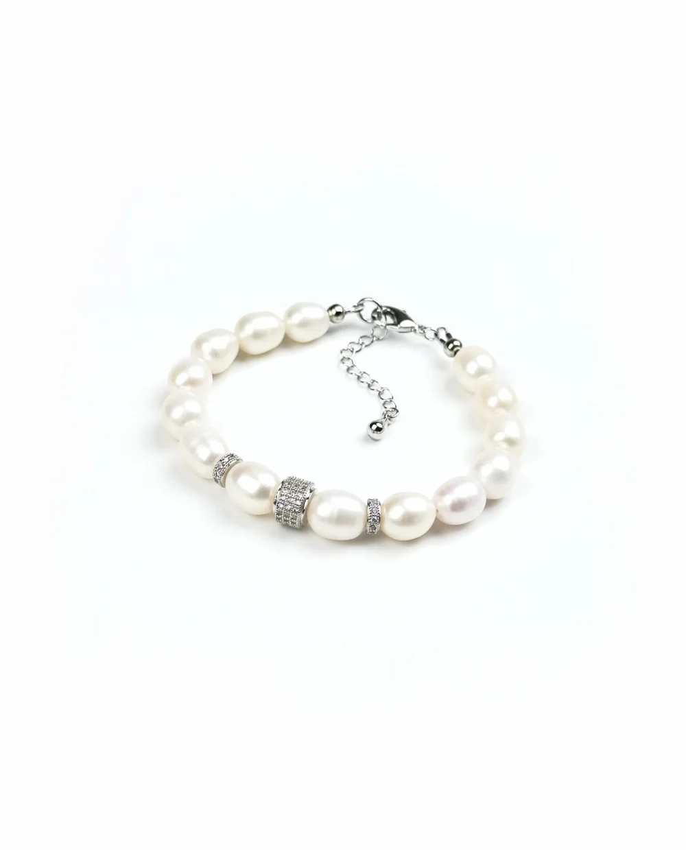 Натуральный жемчуг с холодным перламутровым блеском и искрящиеся фианиты. Жемчуг олицетворяет чистоту и утонченную женственность, а сияющие вставки, инкрустированные фианитами, добавляют нотку роскоши.