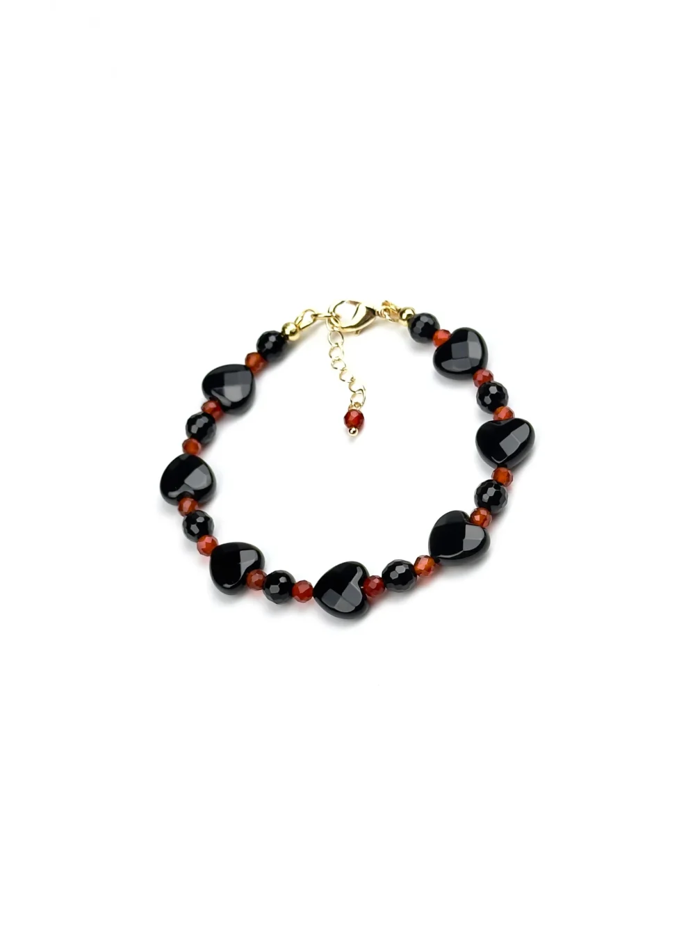 Браслет ПЛАМЕННОЕ СЕРДЦЕ — это воплощение страсти и элегантности, созданное из натурального черного агата и алого сердолика в ювелирной огранке.