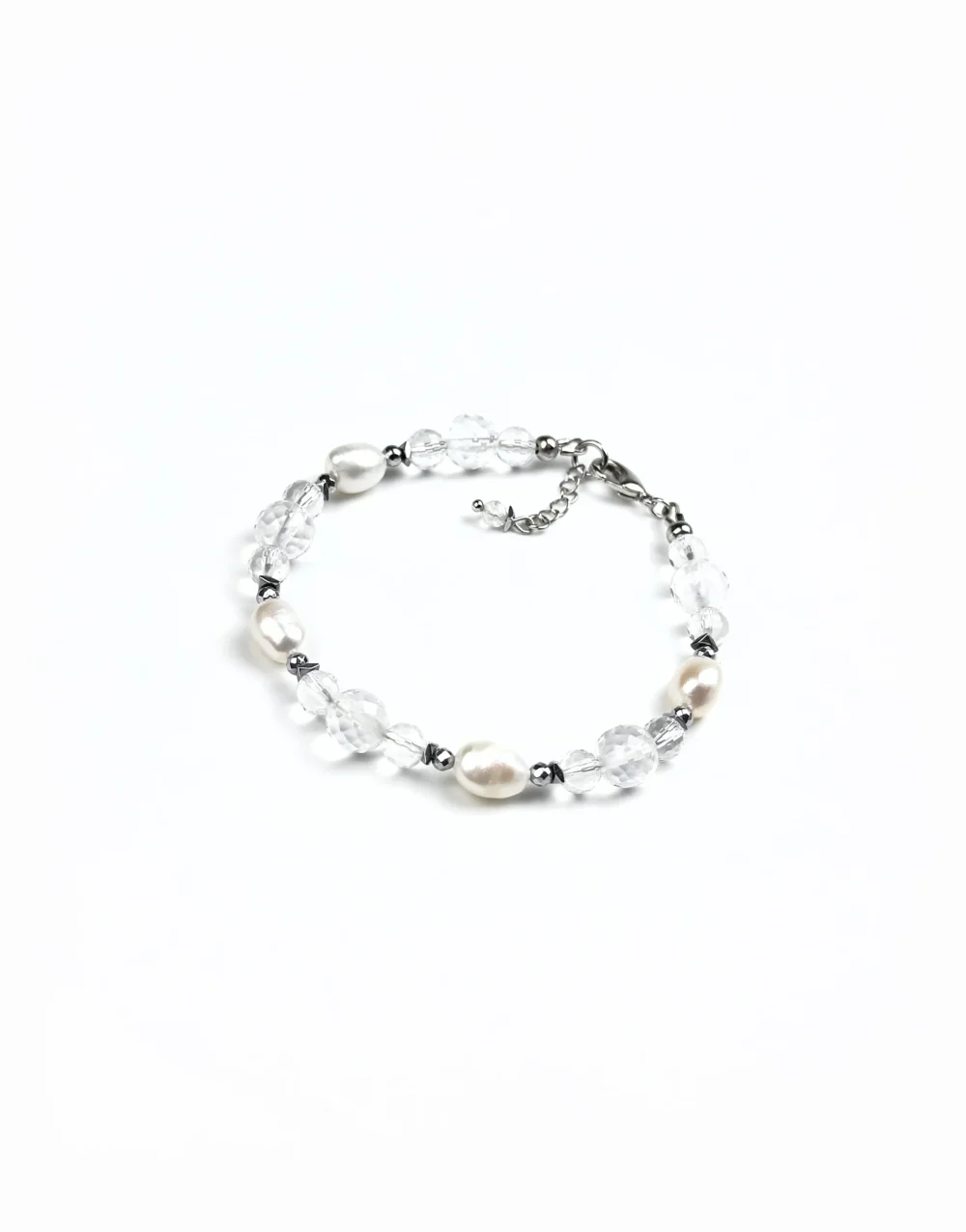 Браслет СНЕЖНАЯ КОРОЛЕВА — это волшебное украшение, которое переносит вас в мир зимней сказки. Он выполнен из натурального разноформенного жемчуга, где каждая жемчужина уникальна, и натурального горного хрусталя в сияющей огранке, напоминающей сияние снежинок в лунном свете.