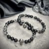Снежный обсидиан с его графической строгостью, вулканическая лава, хранящая память о земном огне, и гематит с холодом закалённой стали. Три лика силы, сплавленные воедино.