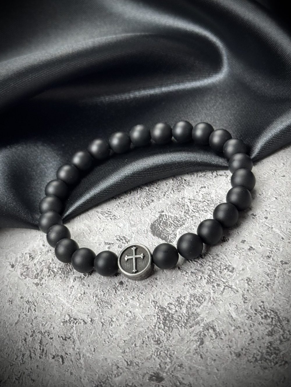 Крест из нержавеющей стали — не просто религиозный символ, а знак вашего внутреннего стержня. Его холодный блеск оттеняет матовую глубину агата, напоминая о том, что сила требует равновесия между твердостью и смирением.