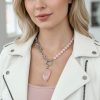 Подвеска в виде крупного сердца, также выполненная из натурального розового кварца, добавляет в образ эффектности и шика.