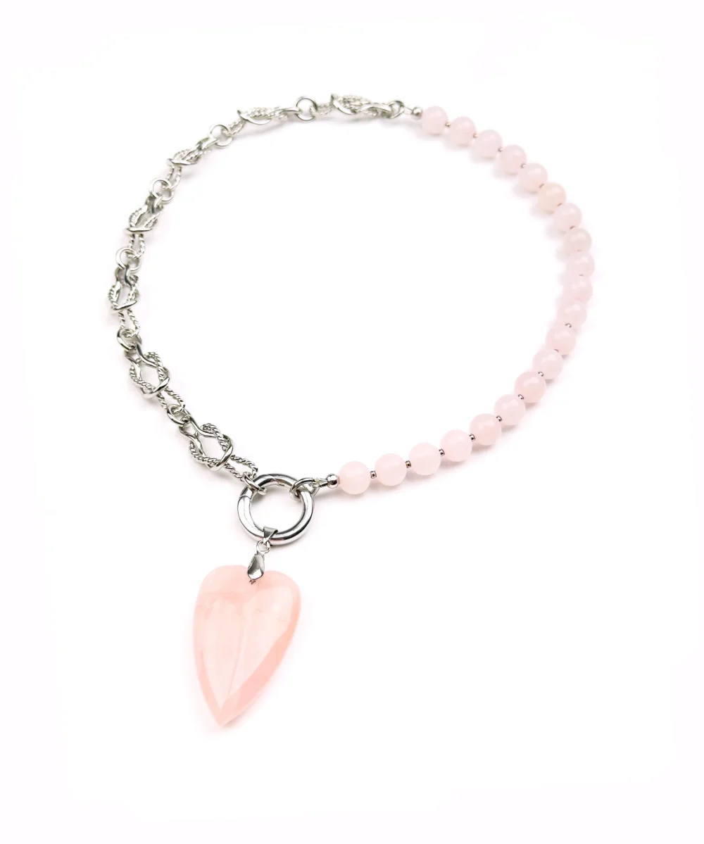 Колье БОЛЬШОЕ СЕРДЦЕ. Розовый Кварц