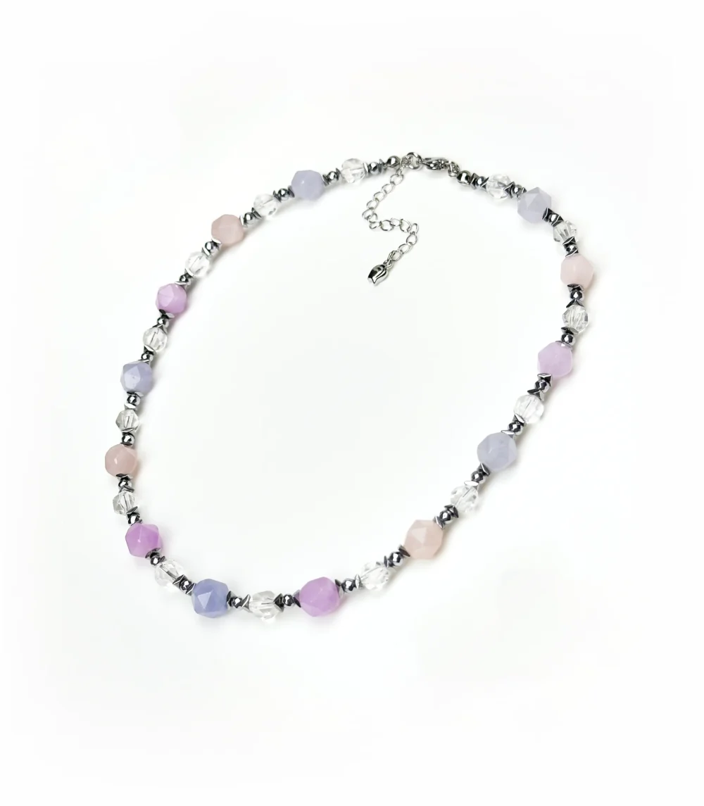 Колье ГРАНИ создано из натуральных камней – кварца, гематита и горного хрусталя – каждый из которых обладает особыми свойствами и дарит своему владельцу гармонию и защиту.