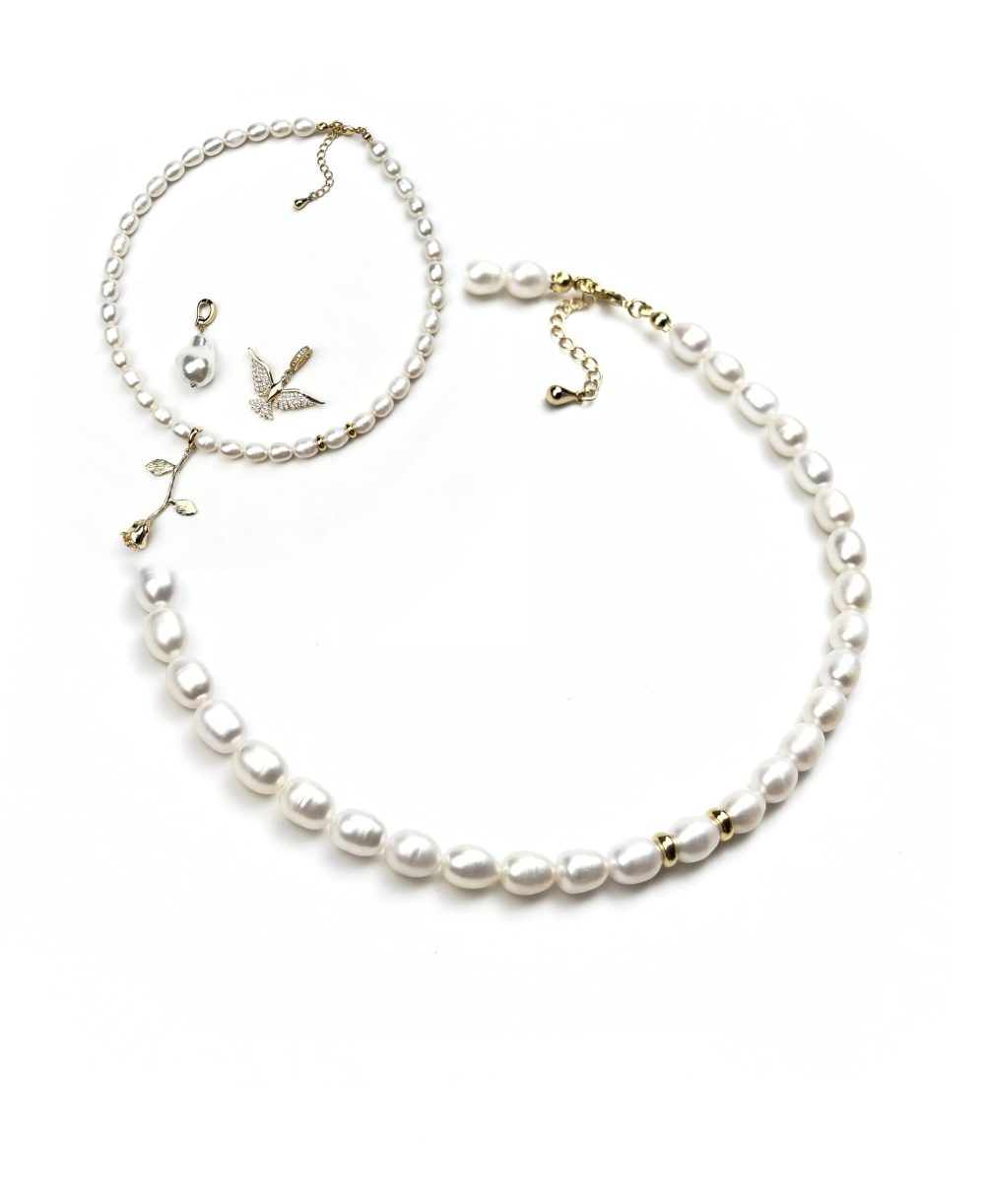 Натуральный жемчуг, чье перламутровое сияние говорит на языке вне времени, не просто дополняет образ, а становится его продолжением: сдержанным, глубоким, по-настоящему утонченным.