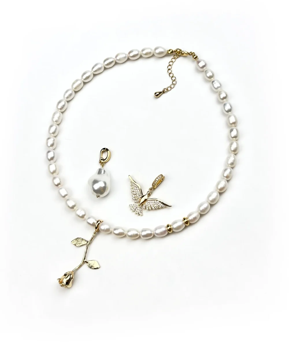 Состав изделия: натуральный жемчуг, подвеска на выбор (Капля, Сердце, Роза, Феникс), фурнитура премиум-класса