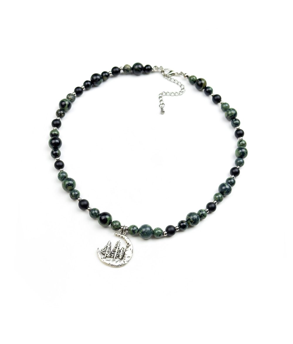 Колье ДУХ ЛЕСА — это уникальное украшение, созданное для тех, кто чувствует связь с природой и ищет гармонию в каждом моменте. Изготовленное из натуральной зеленой яшмы, черного матового агата и гематита, это колье символизирует богатство лесного мира и его удивительные энергии.