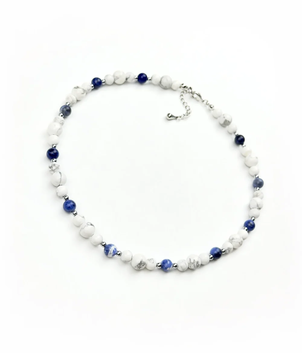 Содалит обостряет интуицию, помогая слышать тишину между мыслями. Магнезит мягко снимает напряжение, даря ощущение свежести и обновления.
