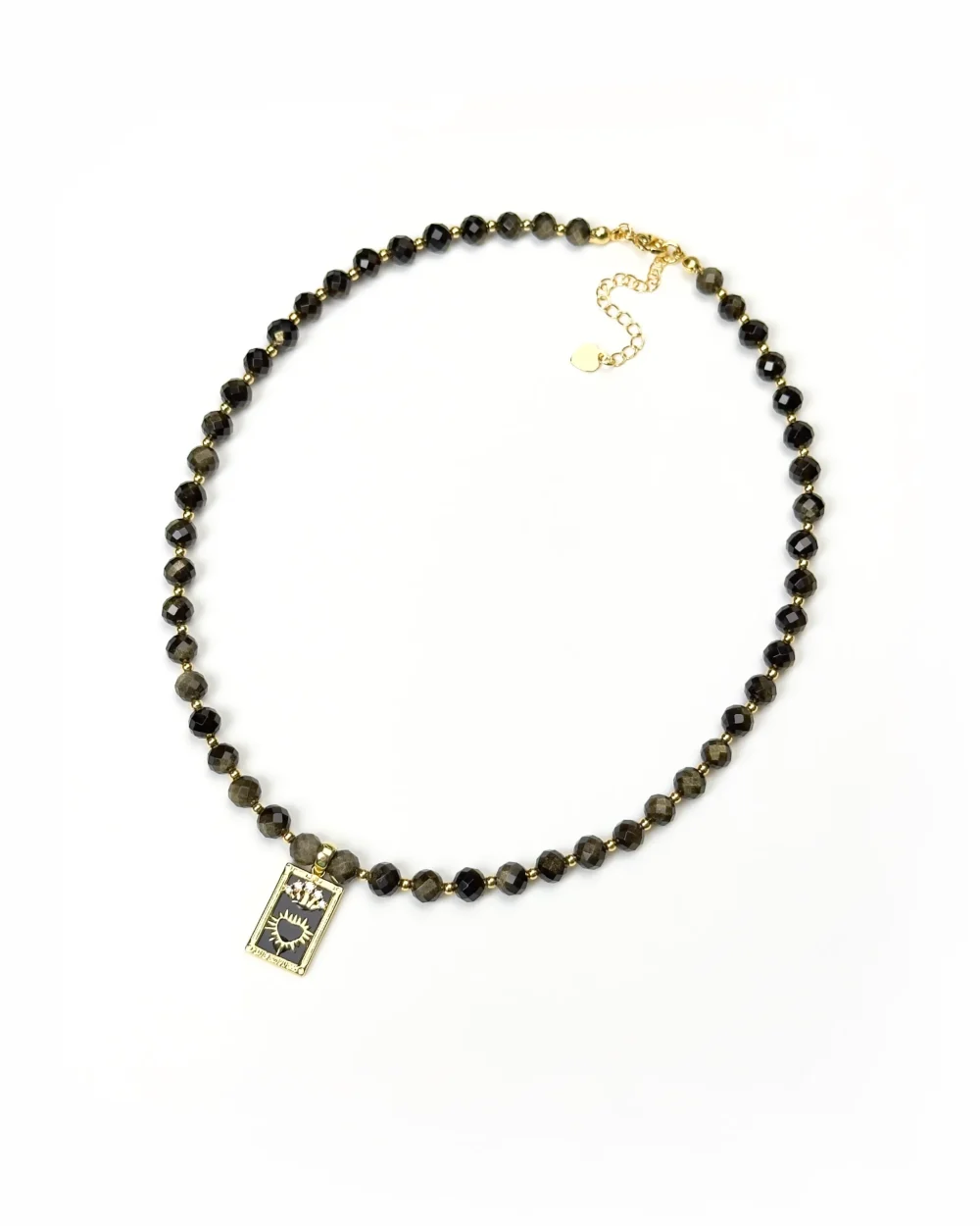Колье ИМПЕРАТРИЦА объединяет в себе магию природы и силу символизма. Оно выполнено из натурального золотого обсидиана, уникального минерала, обладающего волшебной аурой.