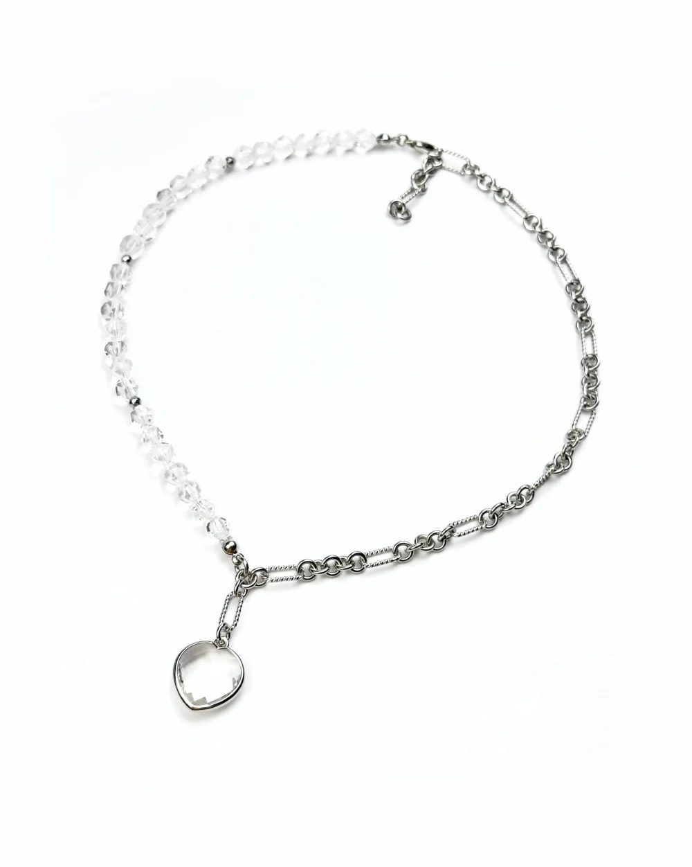 Колье ЛЕДЯНОЕ СЕРДЦЕ — это утонченное украшение, выполненное из натурального горного хрусталя, которое одновременно впечатляет своей красотой и эффектом ледяной свежести.