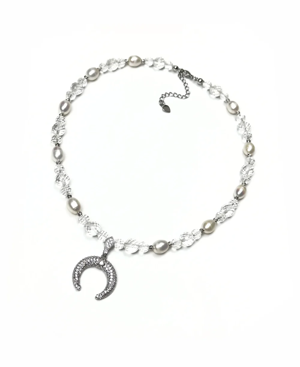Колье ЛУННИЦА — это воплощение волшебства и притягательности, созданное из натурального жемчуга и горного хрусталя, которые словно поймали свет луны. Это украшение — символ утонченности и изысканности, способное окутать свою владелицу аурой загадочности.