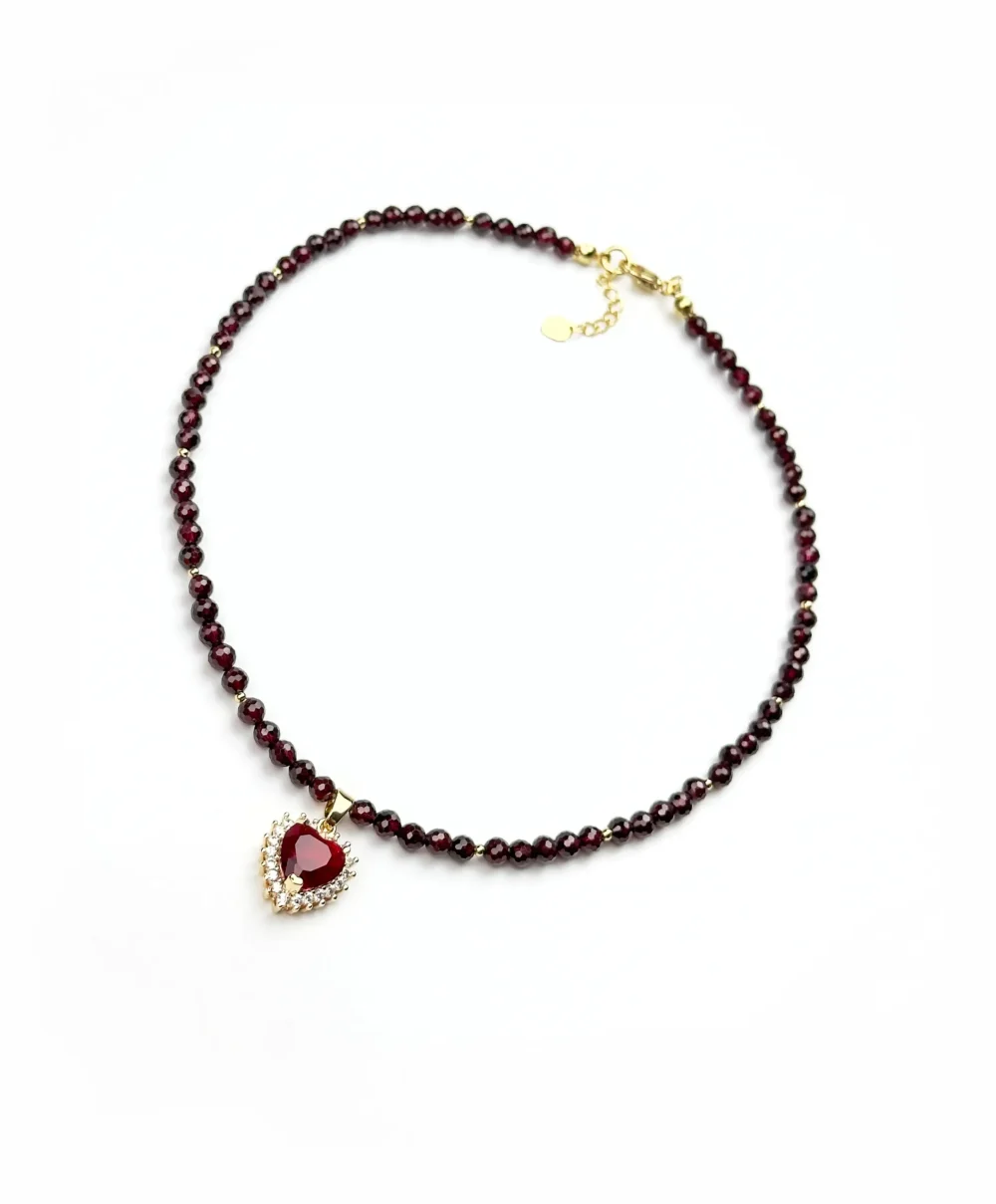 Состав изделия: гранат ювелирной огранке, инкрустированная подвеска Сердце бордо, фурнитура премиум-класса