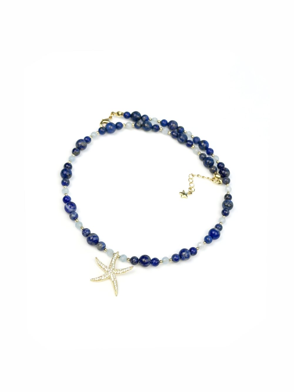 Состав изделия: лазурит, аквамарин в ювелирной огранке, подвеска Морская звезда, инкрустированная фианитами