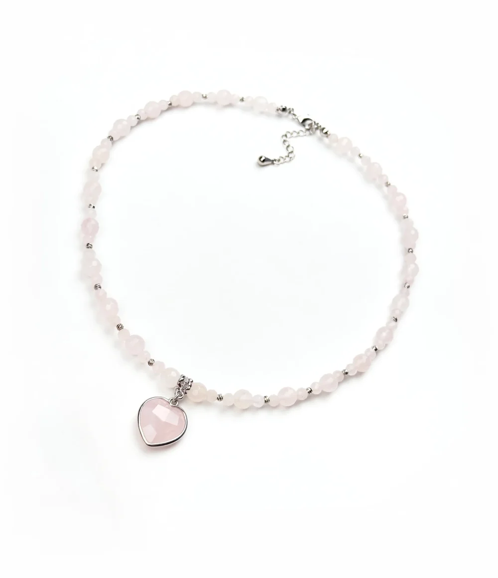 Колье РОЗОВАЯ ДЫМКА — это волшебное украшение из натурального розового кварца словно окутывает своего владельца мягким облаком нежности и гармонии.