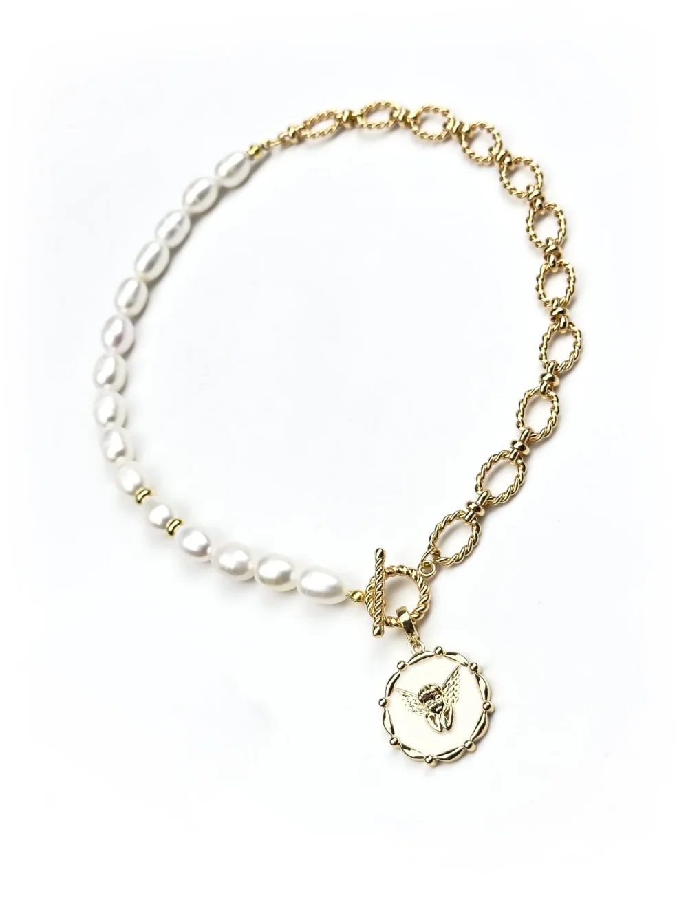 Состав изделия: натуральный жемчуг, цепь в ассортименте, подвеска Ангел