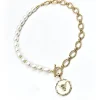 Колье исполнено в трендовом ассиметричном стиле, что придаёт ему динамику и современный вид, а эффектная цепь в позолоте добавляет яркости и броскости.
