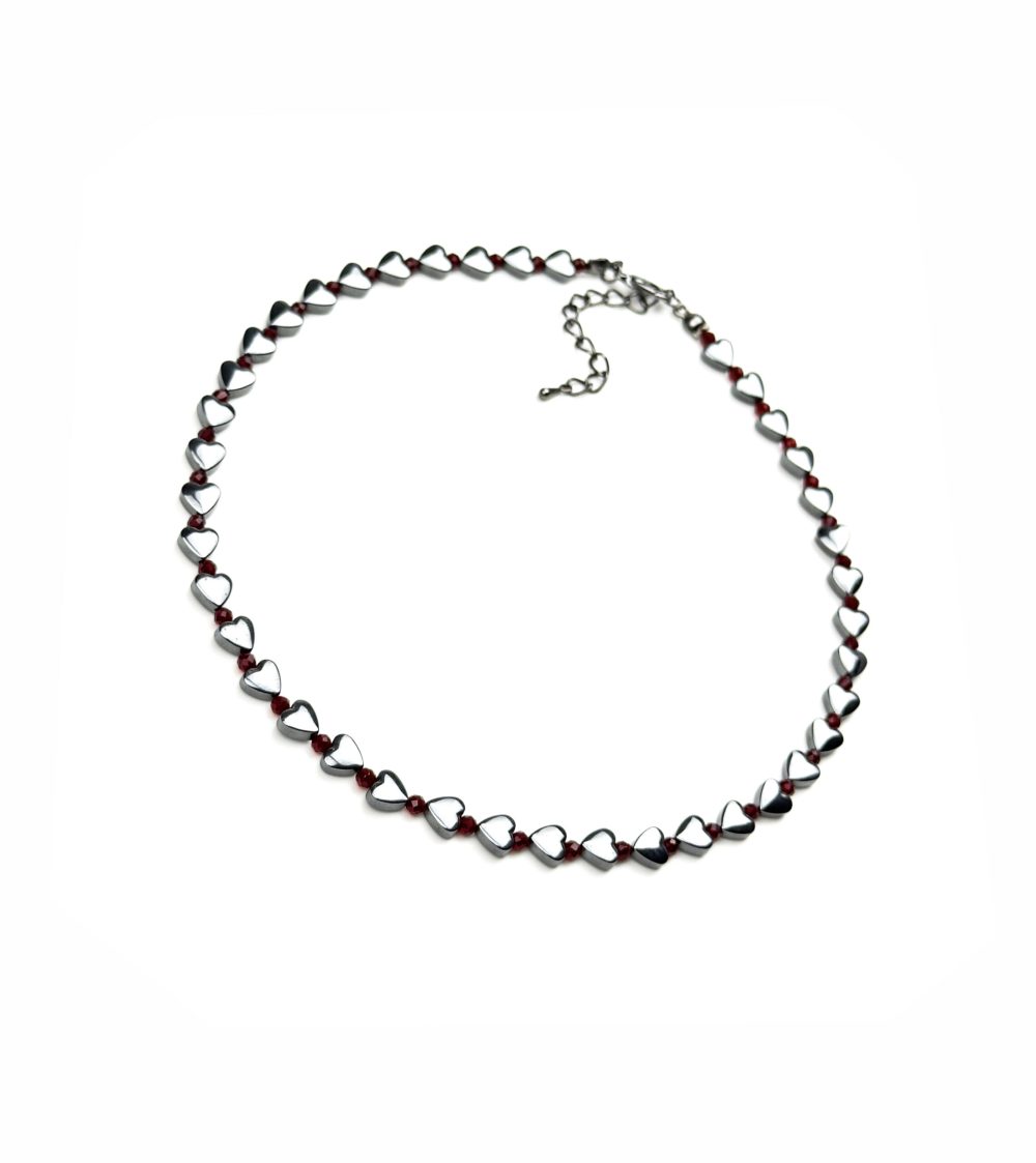 Колье СЕРДЦЕ ВАЛЬКИРИИ — это эффектное украшение, выполненное из натурального гематита в форме сердечек и изысканной шпинели оттенка бордо. Это изделие сочетает в себе силу и красоту, и идеально подойдёт для современной девушки, стремящейся выразить свою индивидуальность.