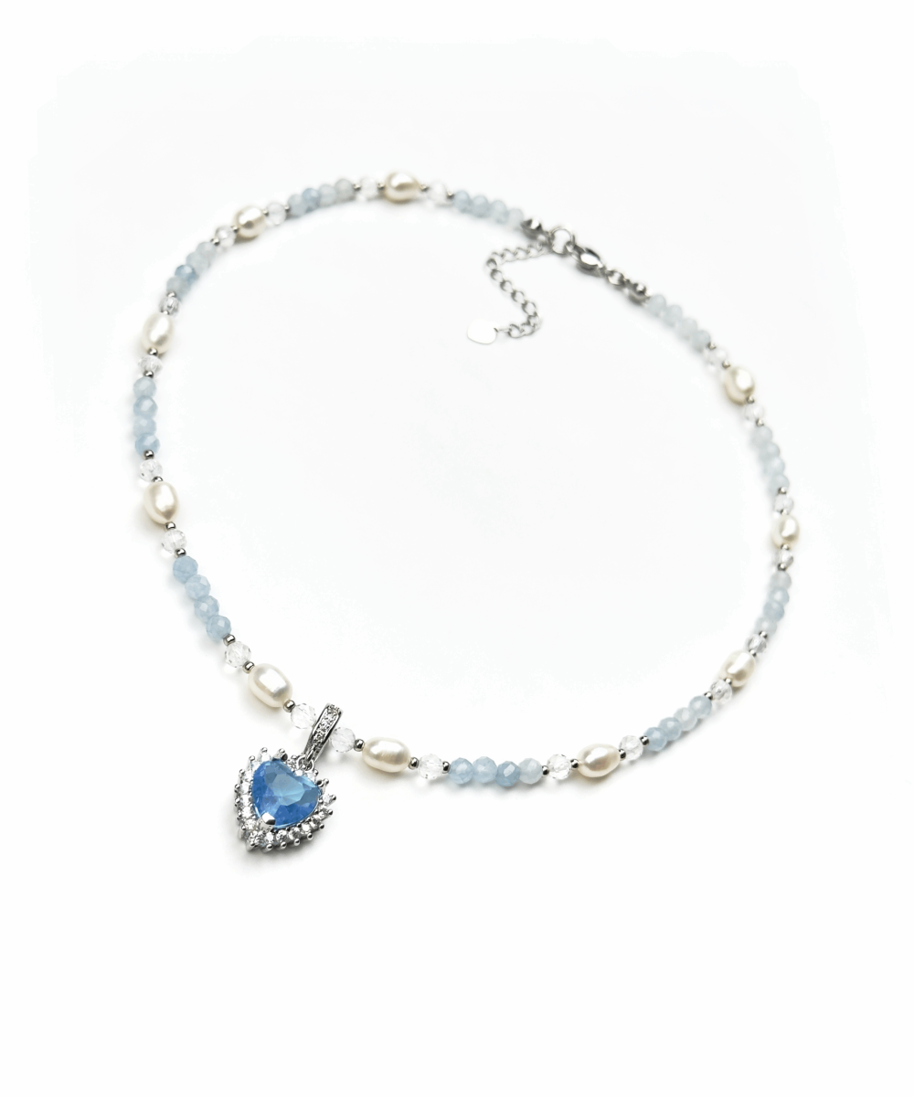 Состав изделия: натуральный жемчуг, аквамарин и горный хрусталь в ювелирной огранке, подвеска на выбор (Снежинка, Голубое сердце)