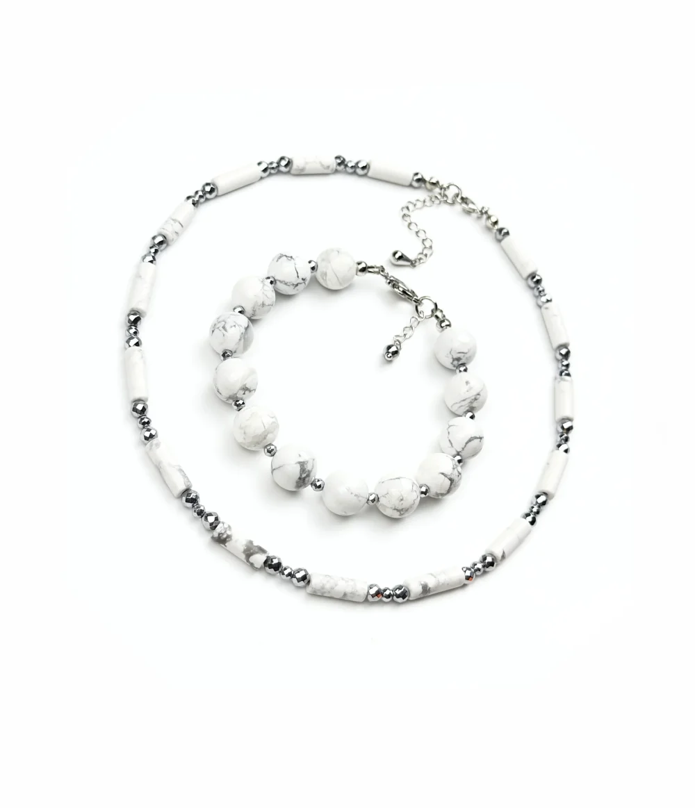 Магнезит с его нежной мраморной дымкой и гематит с дерзким блеском стали. Два начала: умиротворённая чистота и несгибаемая воля. Их контраст — не противостояние, а союз, рождающий новую эстетику.