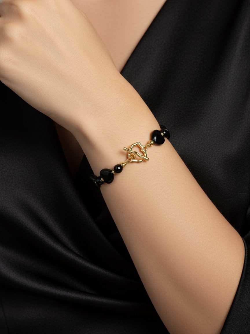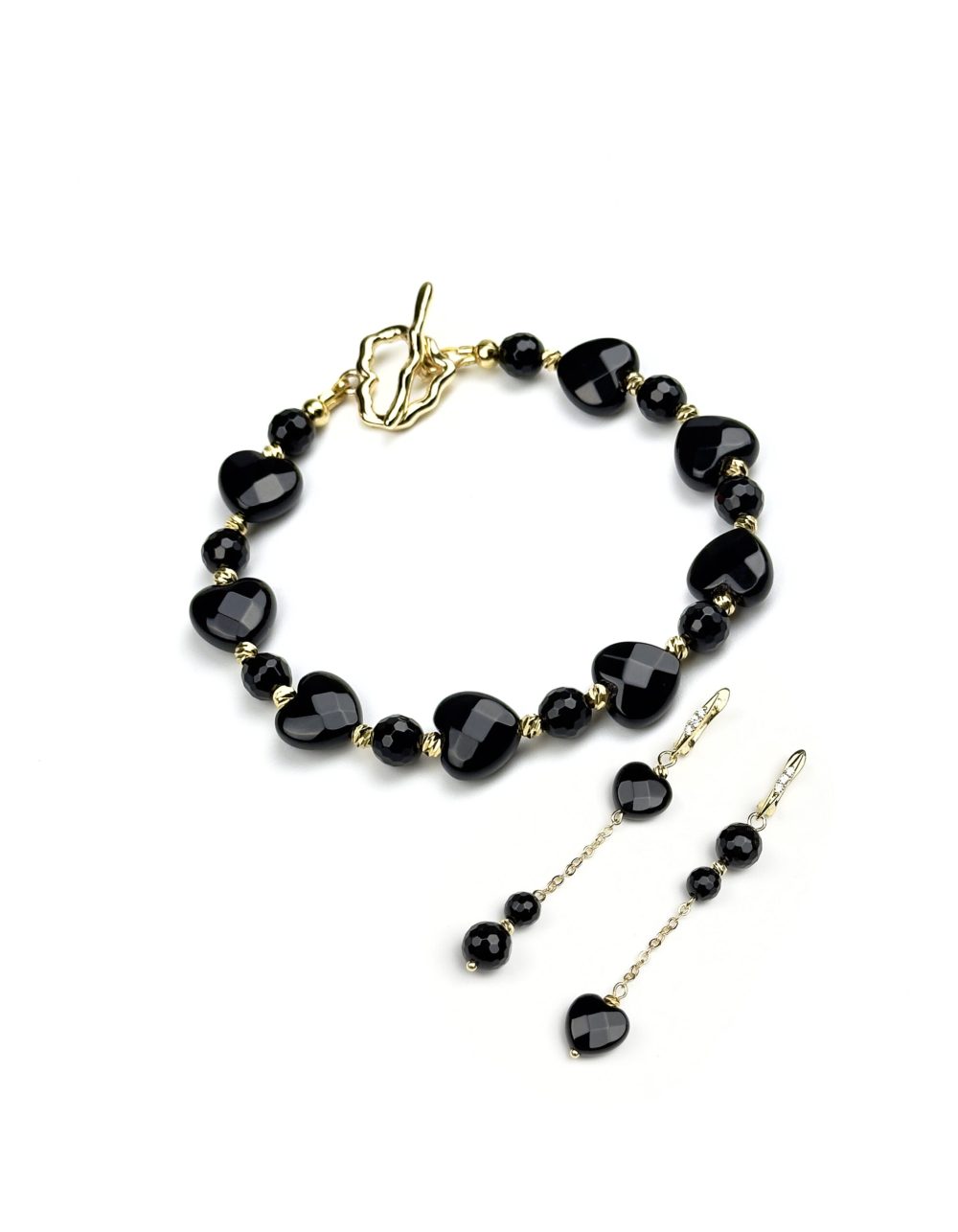 Черный агат в изящной огранке в форме сердец — это диалог между геометрией и эмоцией. Его темная глубина поглощает свет, чтобы вернуть его сдержанным бархатным сиянием, а четкие контуры подчеркивают совершенство линий.