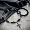 Чёрный агат в сияющей огранке и гематит с его холодным стальным блеском. Два камня, сплетенные в диалоге контраста: таинственная ночная тьма и дерзкий вызов металла.