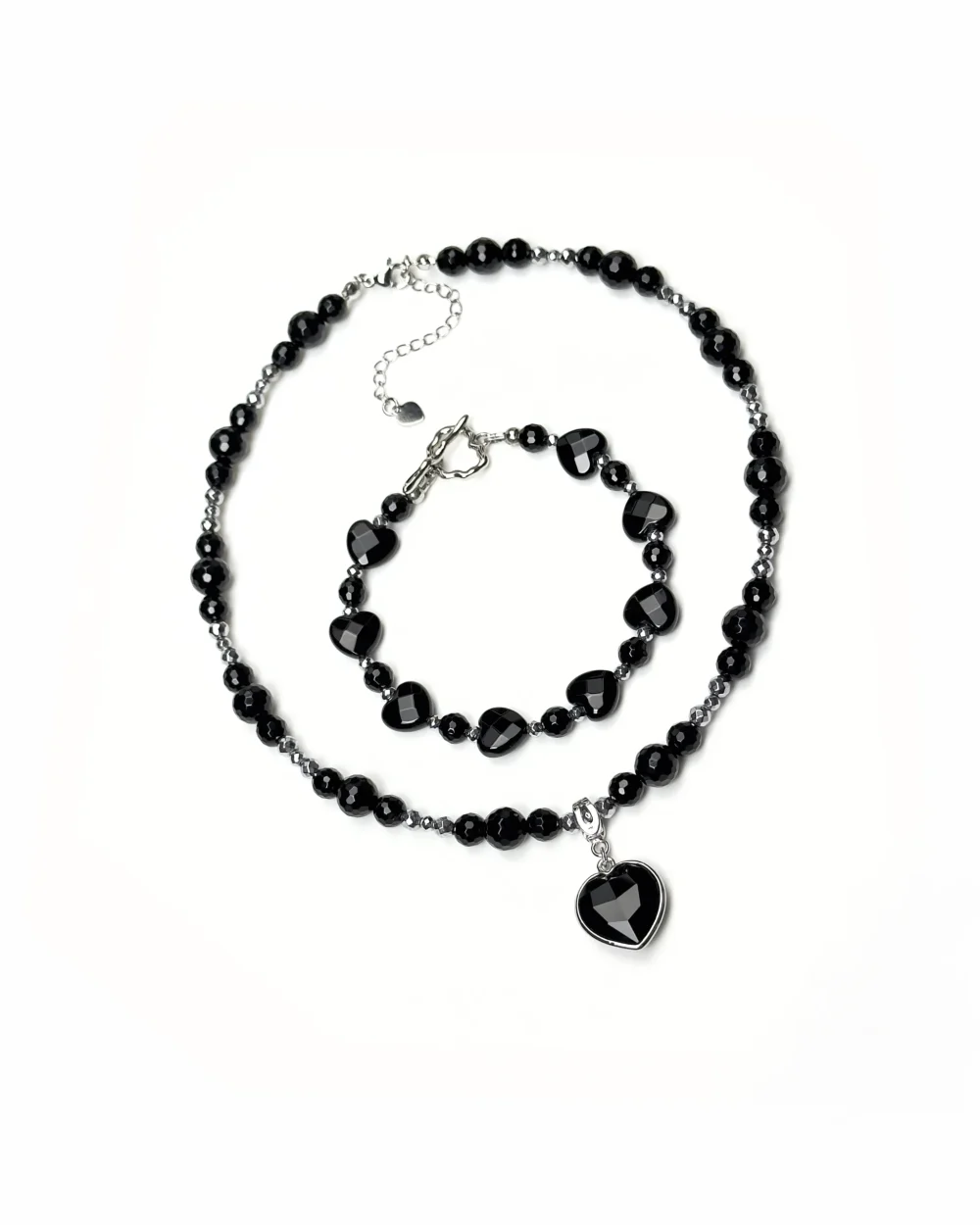Состав изделий: черный агат в огранке, гематит в огранке, подвеска Сердце из агата