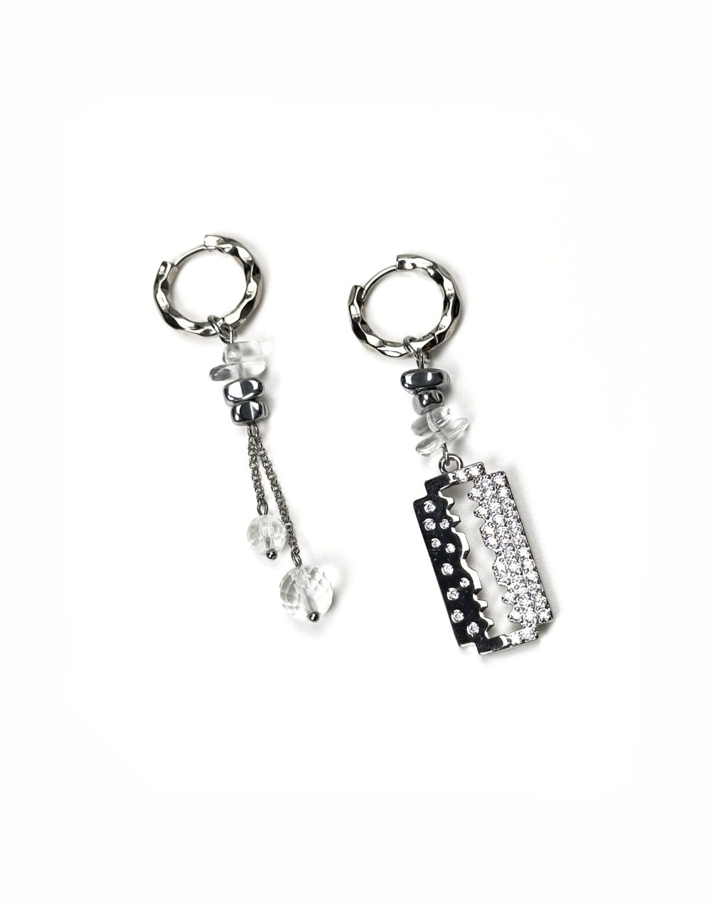 Серьги выполнены с трендовом ассиметричном стиле. Выразительная подвеска в виде бритвы усиливает дизайн, намекая на смелость и бесстрашие обладательницы.